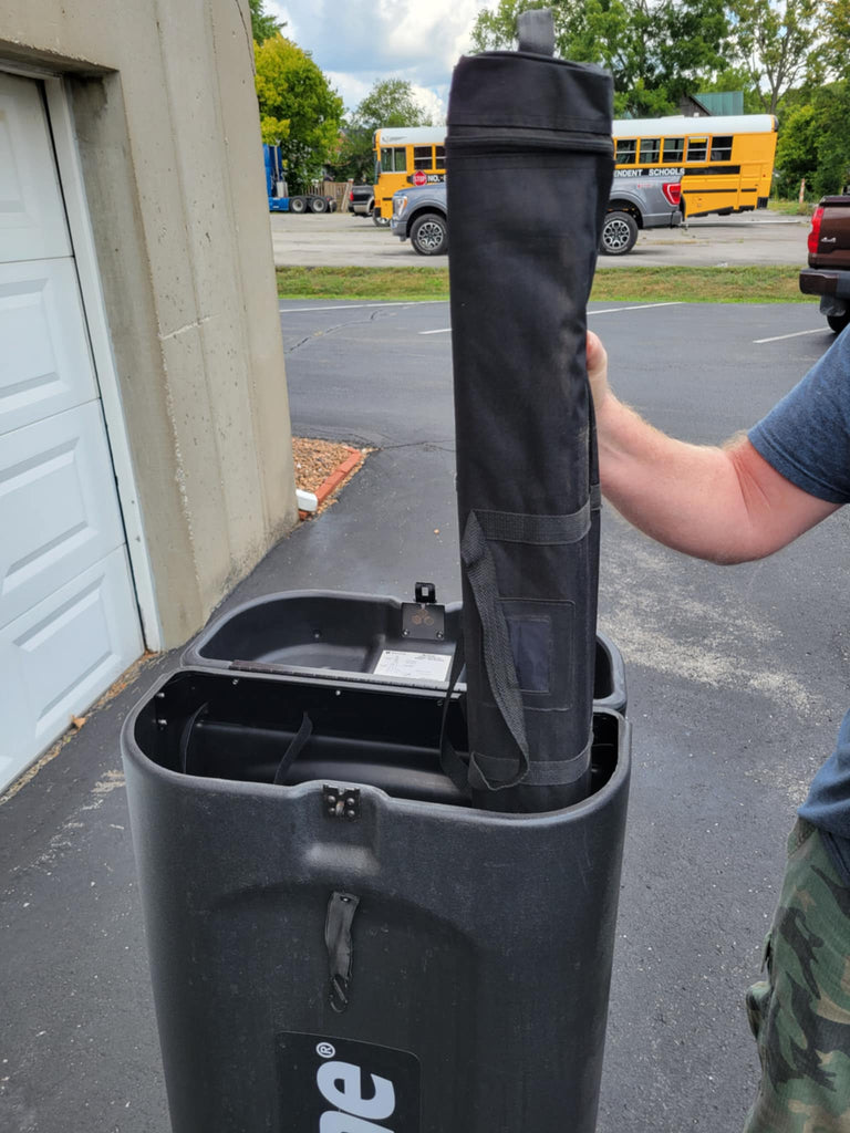 Made for housing 3 retracting banner stands, plus extra storage compartment